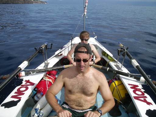 Sedna Solo (L) is the beautiful boat rowed by Roz Savage (only women's single in the race)